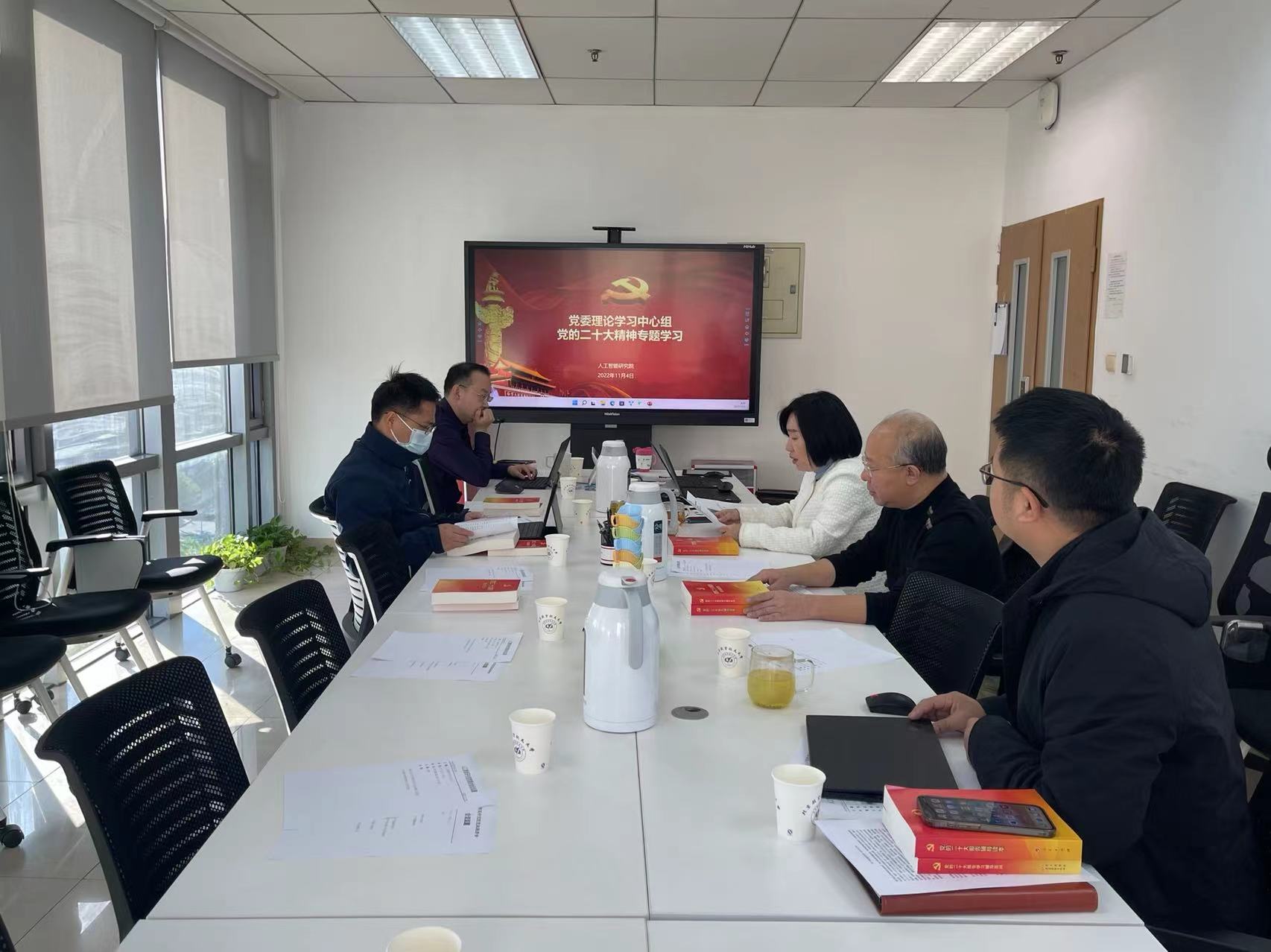 党的二十大开辟了马克思主义中国化时代化的新境界,擘画了以中国式现代化全面推进中华民族伟大复兴的新蓝图,开拓了实施科教兴国战略的新局面。人工智能研究院把学习宣传贯彻党的二十大精神作为首要政治任务,组织党委理论学习中心组分别于10月17日、10月26日、11月4日专题学习党的二十大精神,部署贯彻落实工作。会议由党委书记金蓉主持。