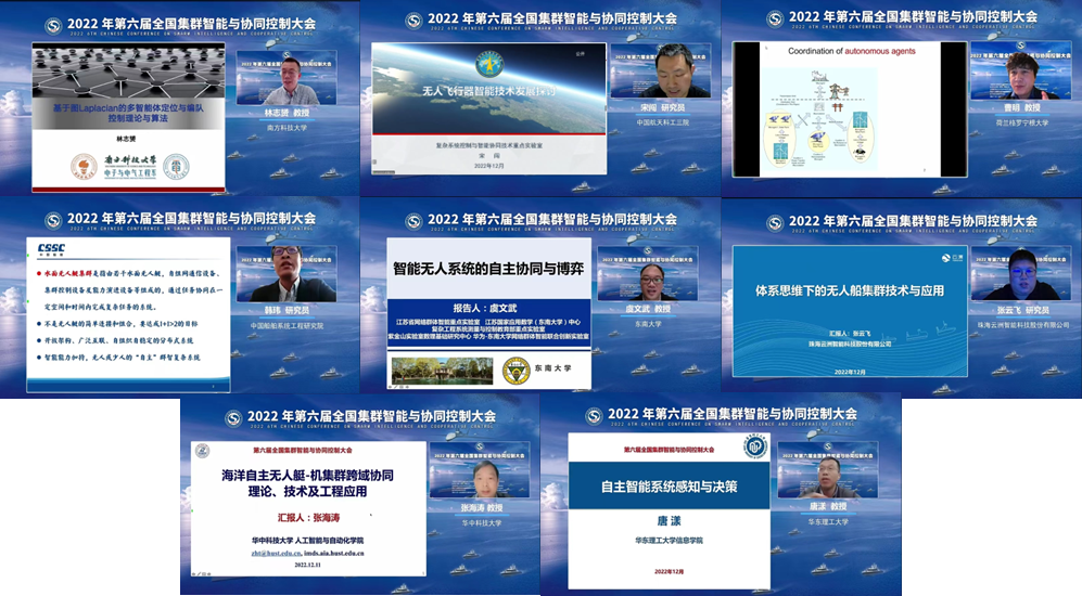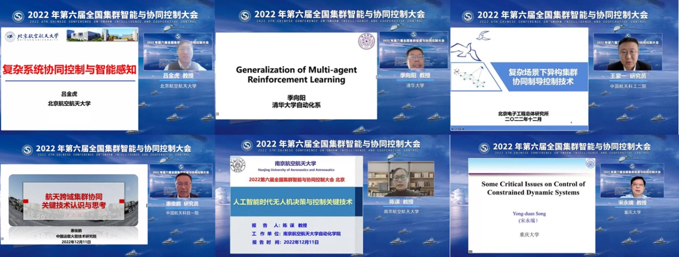 公司吕金虎教授、清华大学季向阳教授、中国航天科工集团二院二部王蒙一研究员、南京航空航天大学陈谋教授、中国航天科技集团一院14所惠俊鹏研究员、重庆大学宋永端教授、南方科技大学林志赟教授、中国航天科工集团三院三部宋闯研究员(赵佳佳代)、荷兰格罗宁根大学曹明教授、中国船舶系统工程研究院韩玮研究员、东南大学虞文武教授、珠海云洲智能科技股份有限公司张云飞研究员、华中科技大学张海涛教授、华东理工大学唐漾教授分别做了特邀大会报告。