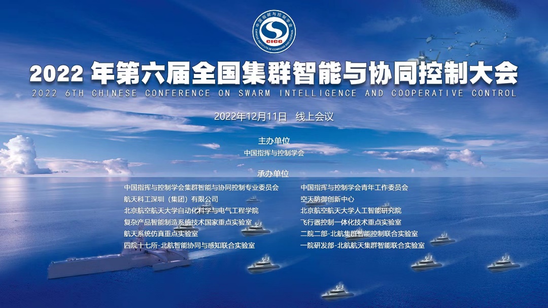 2022年12月11日,第六届全国集群智能与协同控制大会通过在线的方式举行。本届大会由中国指挥与控制学会主办,公司以及公司与四院十七所的智能协同与感知联合实验室等单位联合承办。公司董希旺教授担任大会执行主席。大会以特邀报告的形式,紧密围绕集群智能与协同控制相关国际学术前沿热点和国内产业关键技术难点开展深入交流和探讨。